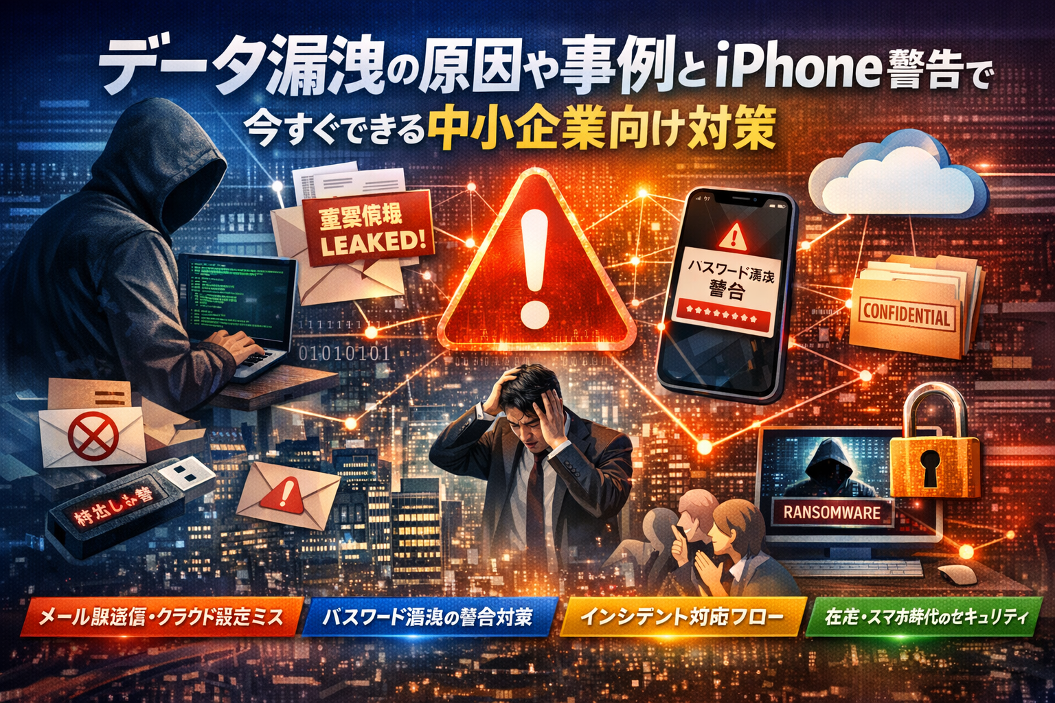 この記事では、ニュースで聞く大企業の事故ではなく、いま読んでいるあなたの会社に実際に起こり得るパターンを洗い出し、iPhoneやブラウザの警告をきっかけに、自社と自分のアカウントをどこから見直せばいいのかを、現場で迷いがちな順番で整理しました。情報システム専任者がいない会社でも、今日から実行できる判断材料を手渡したい。それがこの記事を書いた理由です。