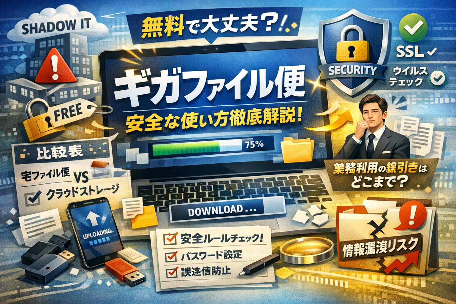 「ギガファイル便とは何ですか」「無料のファイル便を業務で使って本当に大丈夫か」この判断を誤ると、情報漏洩リスクだけでなく、現場が勝手にシャドーITへ流れる二重の損失が生まれます。本記事では、ギガファイル便とは何かを一言で整理し、PCとスマホとiPhoneでの具体的な使い方、送り方や受け取り方、ダウンロード方法までを最短ルートで解説します。