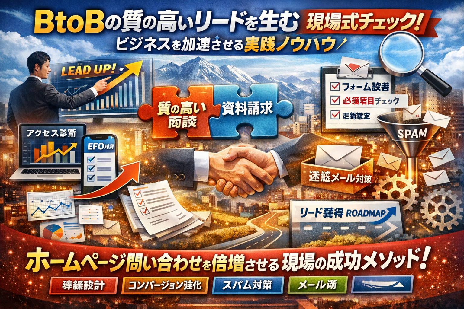 企業のホームページ支援をしていると、アクセスはあるのに問い合わせが来ないサイトや、フォーム営業ばかりが届いて本気の相談を取りこぼしているサイトに度々出会います。営業担当から「広告を増やしても、商談につながる問い合わせが増えない」と持ち込まれる相談の多くは、広告やデザインではなく、導線とフォーム設計と返信運用に原因がありました。