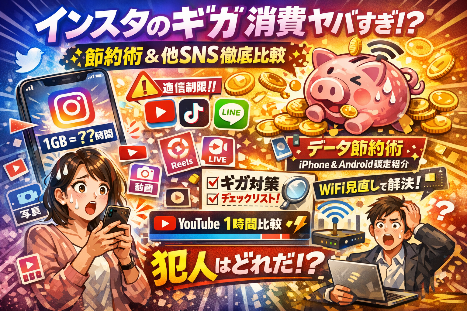 本記事では、Instagramのフィード投稿やストーリーやリールやライブ視聴、DMや通話までを分解し、「1GBでどれくらい見られるか」の現実的なギガ消費目安を整理しつつ、インスタのデータ使用量どこで確認するか、インスタギガ消費減らすためのiPhoneとAndroid別の具体的なモバイルデータ節約設定まで一気通貫で解説します。さらに、インスタとYouTubeやTikTokのギガ消費比較で犯人を特定し、「インスタ通信量が急に増えた」「インスタギガ食う知恵袋的な悩み」が起こるパターンをチェックリスト化。個人の節約だけでなく、自宅WiFiや社内WiFiの設計を見直してインスタギガ地獄から抜け出す通信戦略まで踏み込むので、この数分を投資するかどうかで今後のギガとお金の減り方が変わります。