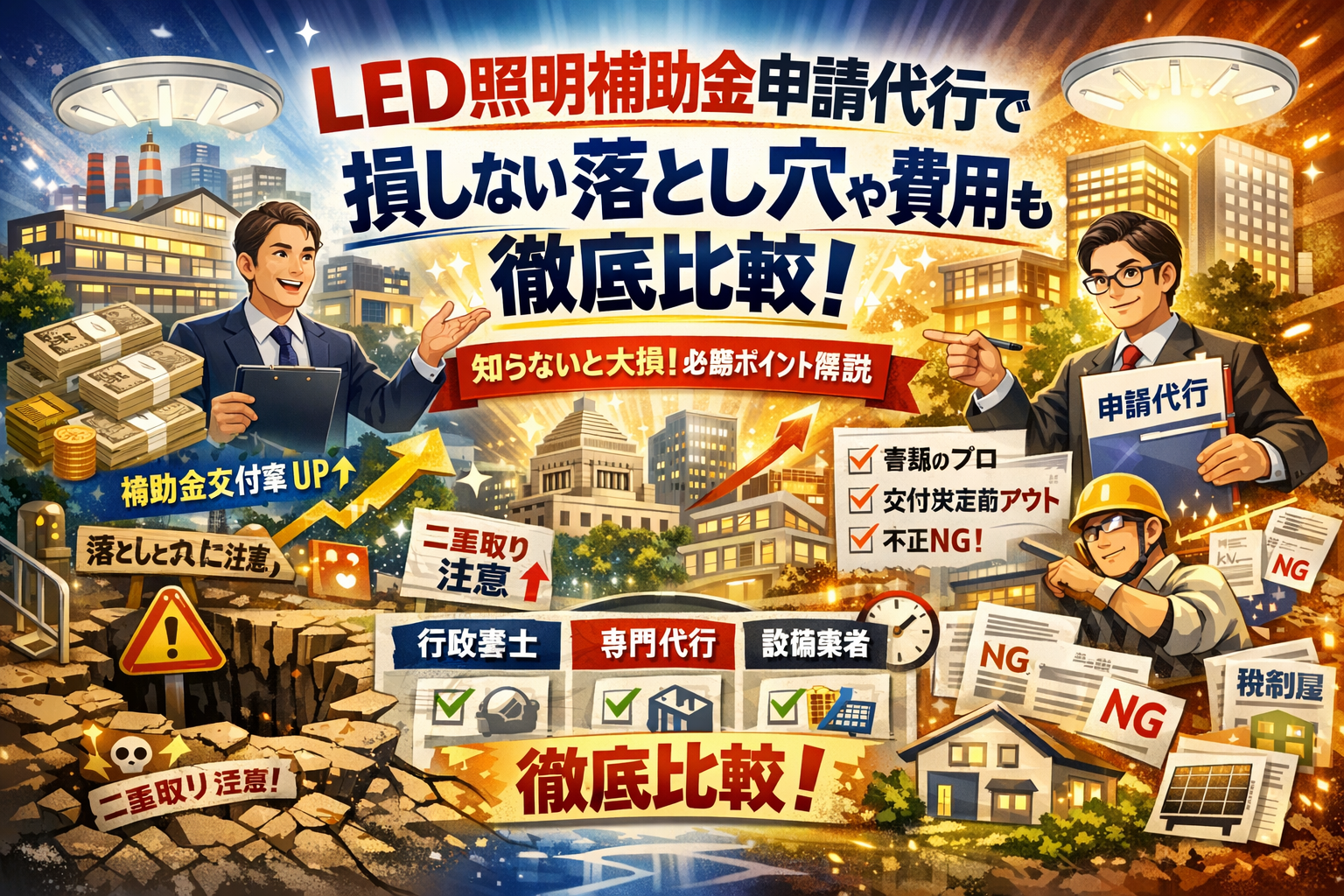 LED照明補助金申請代行で損しない落とし穴や費用も採択率も徹底比較!知って得するポイント満載