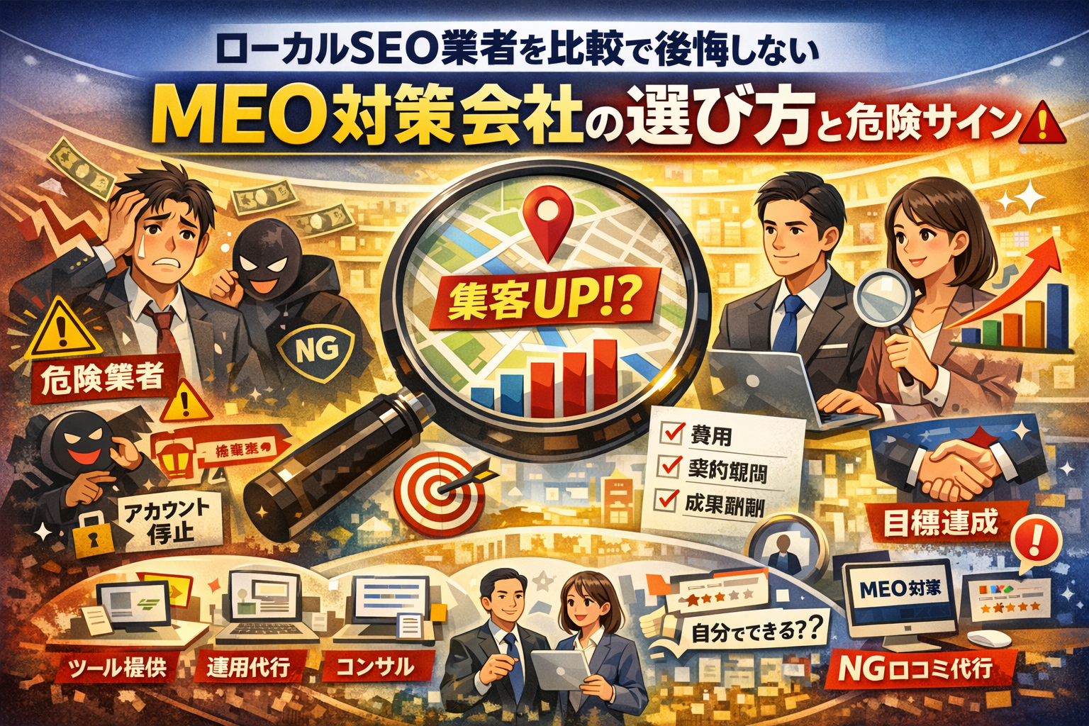 - 絶対に避けたいMEO対策会社のサイン──悪質な口コミ代行とガイドライン違反