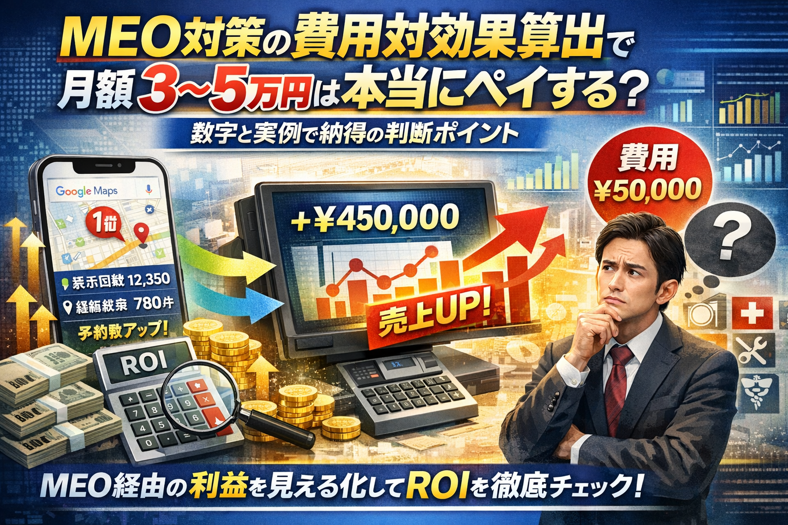 MEO対策の費用対効果算出で月額3〜5万円は本当にペイする?数字と実例で納得の判断ポイント