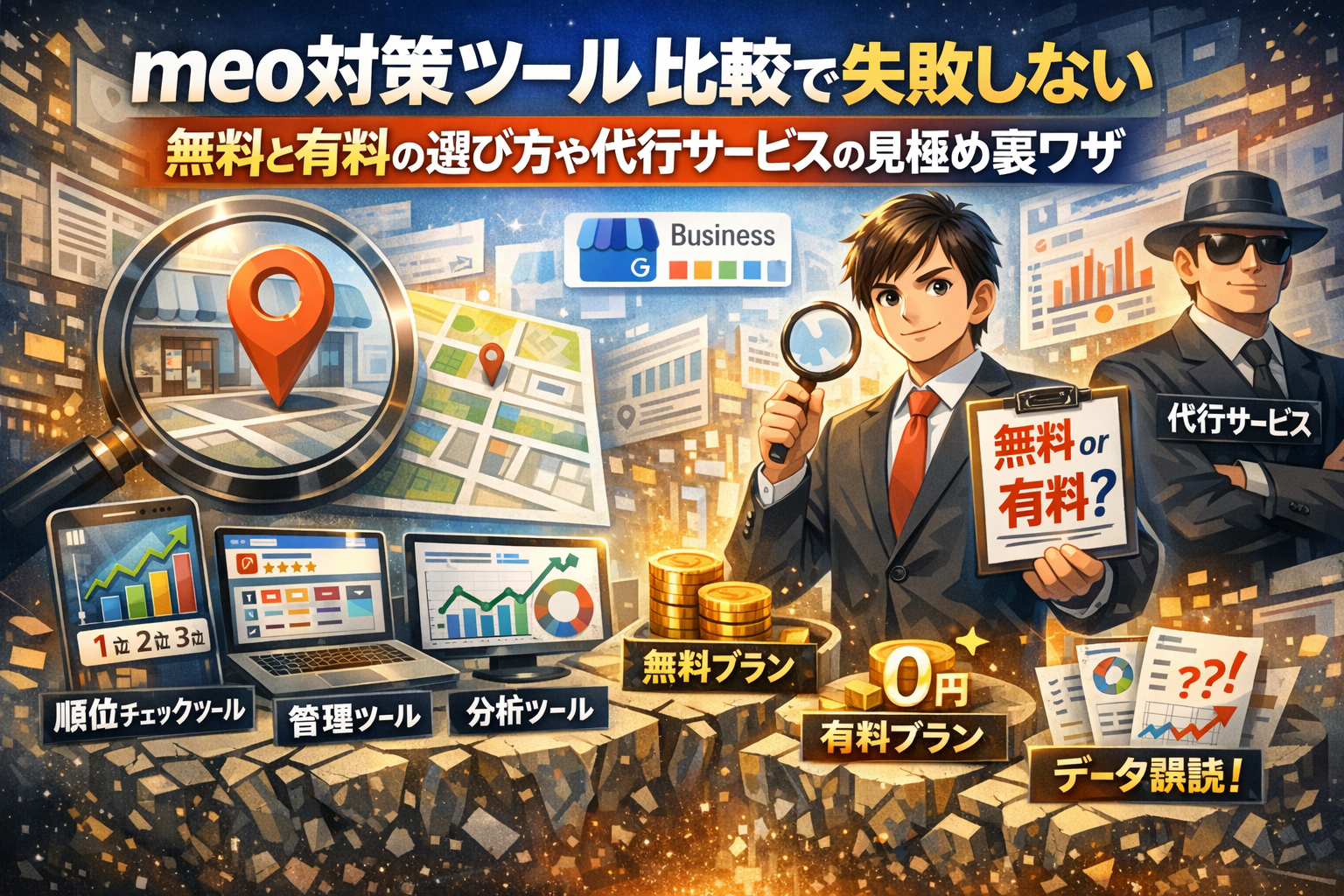 このあと、SEOとの違いからMEO対策ツールとは何かを整理し、MEO順位チェックツール 無料版やMEOチェキ無料プランでどこまで戦えるか、どこから有料ツールやMEO対策代行に切り替えるべきかを具体的に示します。さらに、MEOチェキ・Gyro-n MEO・Canly・MEOアナリティクスなど主要ツールを実務目線で比較し、オーナー権限ロックや一括更新で全店舗が同じ顔になる失敗パターンも掘り下げます。